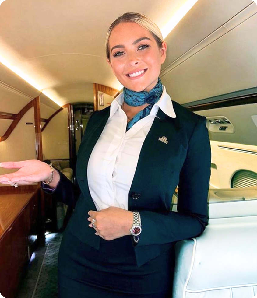 Indulge in the professionalism of ZURACREW cabin managers, trained to anticipate your every need with discretion, impeccable manners, and top-tier service. Our corporate flight attendants are carefully selected for expertise in luxury travel, fine dining, and etiquette, ensuring your private jet experience remains truly private and seamless.